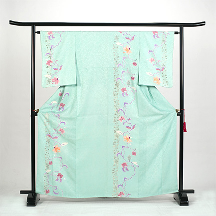 気持ちが華やぐよう地色は白味がかった淡い緑の百緑色(びゃくろくいろ)です。 |