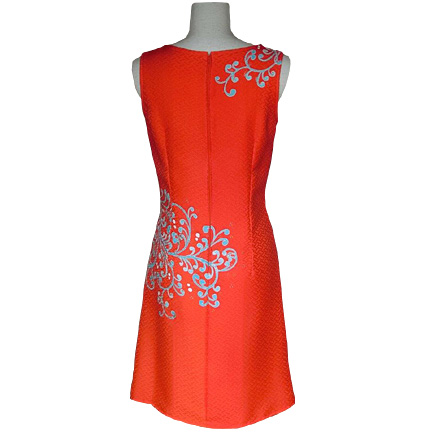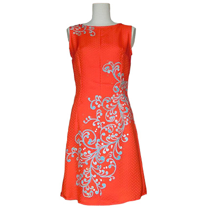 初めて洋装への転換を図り、地色はずっと染めたかった朱色を引いた。
