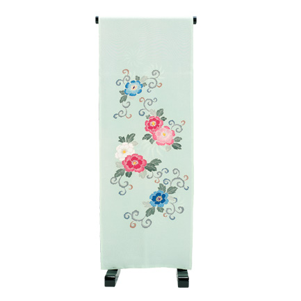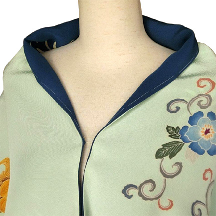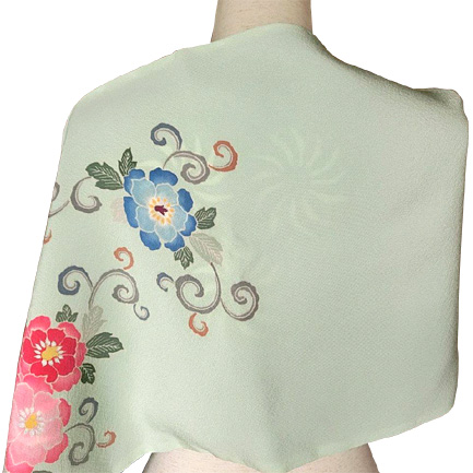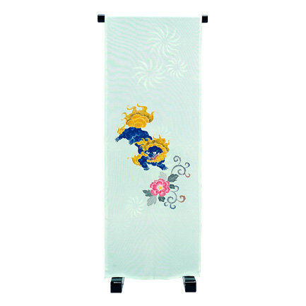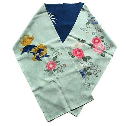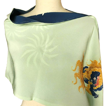 また、リバーシブルで使えるよう裏に毛卍紋を描くことで唐獅子を連想させられるようにしています。毛卍文がうっすらと透け、柄を見つめさせる効果を狙っています。