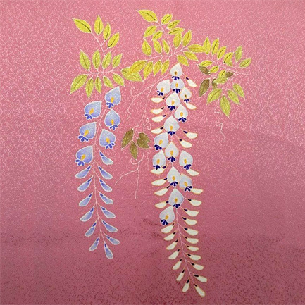 藤色は青味のある紫色で顔の近くに寄せると、顔色が悪く映ってしまうかたもいらっしゃいます。その理由で赤味を含ませた藤色、紅藤にしました。 |