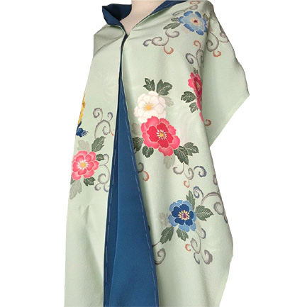 唐獅子と牡丹、少々強い柄であるが古典柄で品の良いものに仕上げたい、裏には獅子の毛をイメージした毛卍文だけで唐獅子をイメージさせてみよう、そんな発想から生まれた作品。